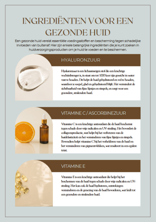 – Informatie over huidtypes: Leer hoe je jouw huidtype kunt herkennen en welke natuurlijke ingrediënten het meest geschikt zijn voor jou.
